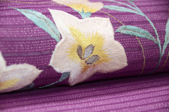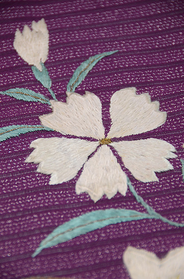 艶やかな赤紫ですが、白い刺繍が映えて、清潔感に溢れています。