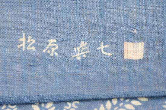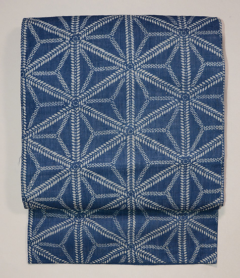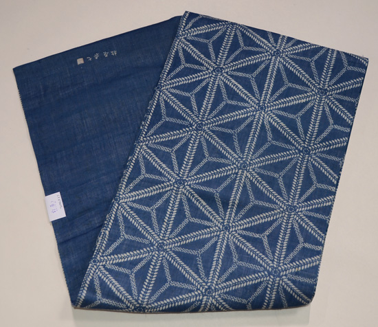 松原与七作 麻の葉模様麻地藍型染