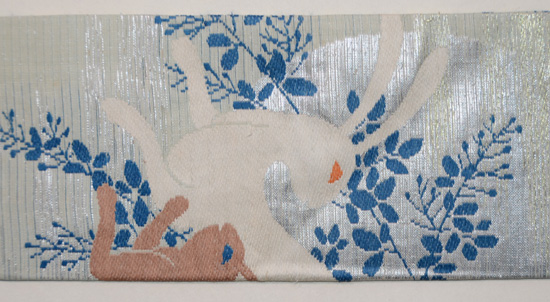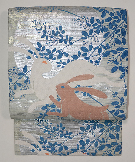 シルバーにブルーが映えて、うさぎの色も華を添えて、気持ちの良い帯になっています。