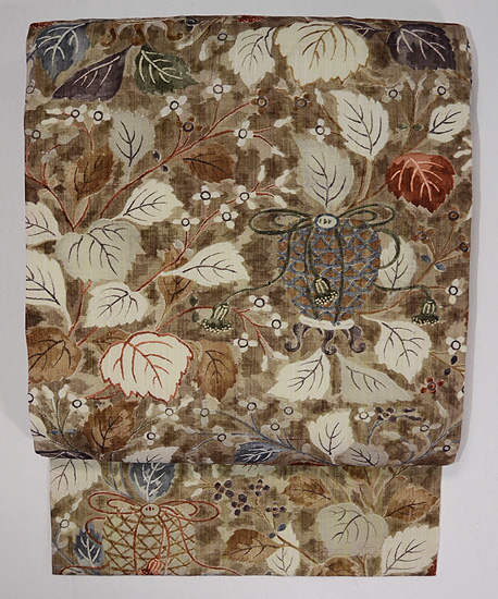 麻地麻の葉模様名古屋帯