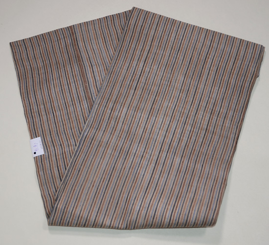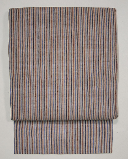 茶に白い格子の、非常に糸味の良い上布を帯にしました。