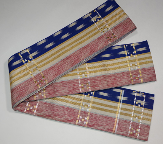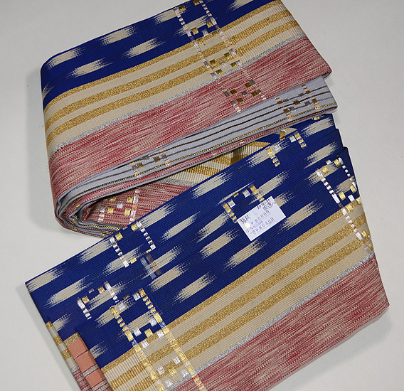 こちらはもとは丸帯だったものを当店にて半幅帯に仕立て直したものになります。