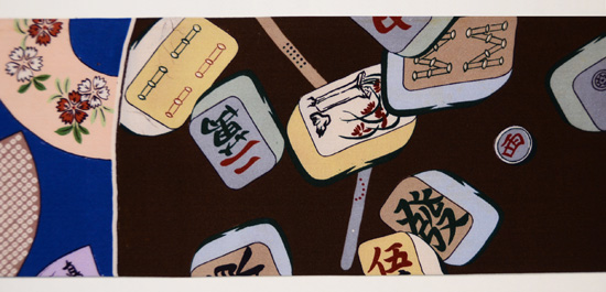 緑は藍にくちなしでしょうか、刀の鍔のようなデザインは茜でしっかりと色づけされています。