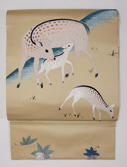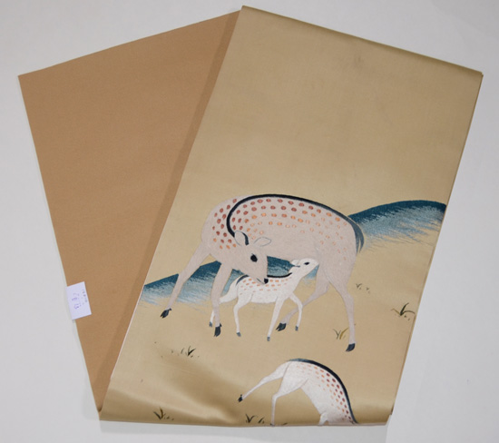 不思議なカップルが、綴織りの帯に収まっています。お客様の御注文だったのでしょうか。