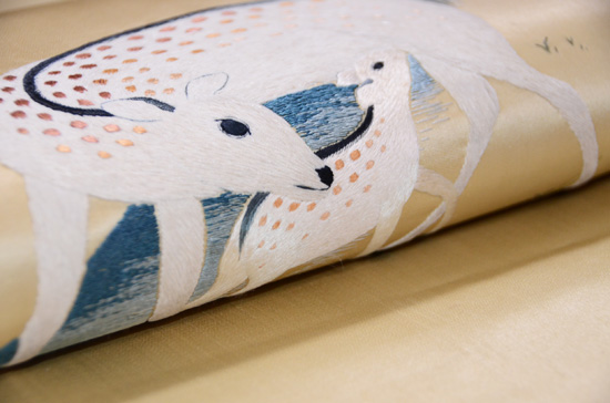 ホワイトクリスマスのひと夜に、雪の女王になれそうなファンタティックな刺繍帯です。
