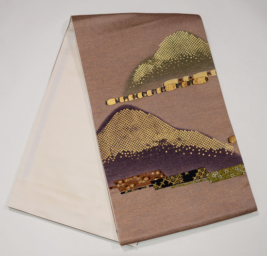 渋いベースと、艶やかな御殿模様との対比が見事に決まった美しい帯です。