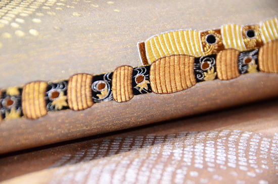 少し抑えた色使いと緻密な刺繍は、高貴な能の世界観を美しく表現しています。