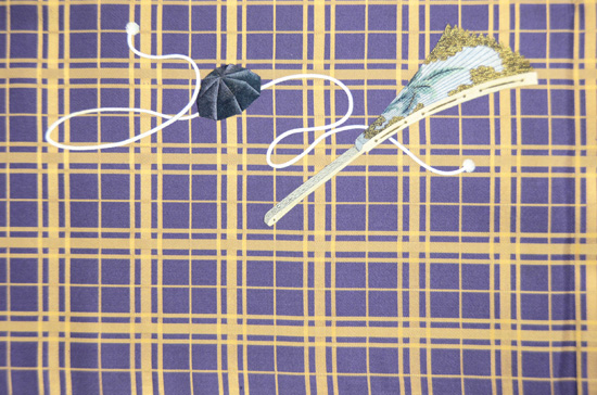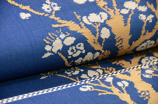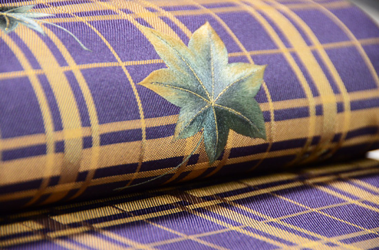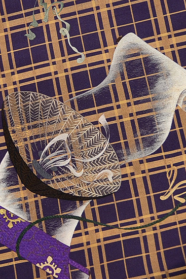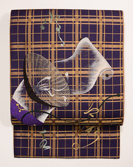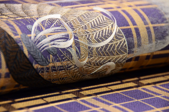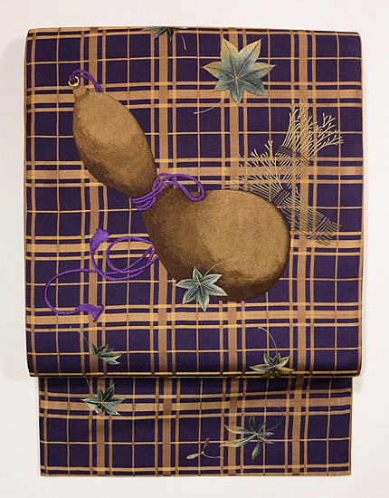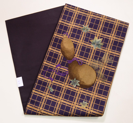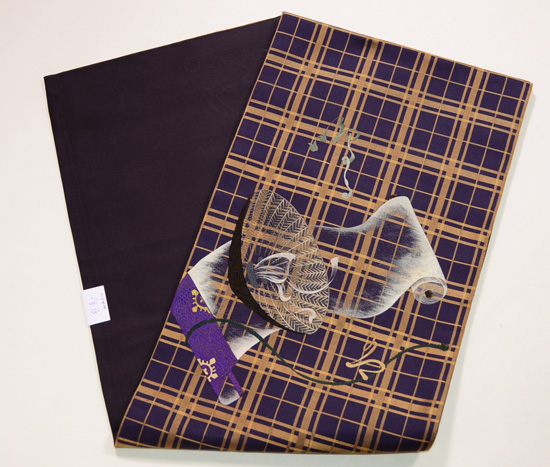 弁慶格子に歌舞伎の勧進帳を掛けた、贅沢な帯です。