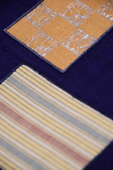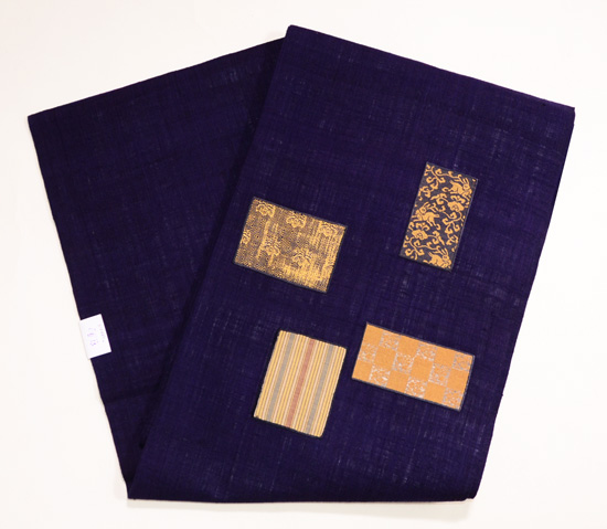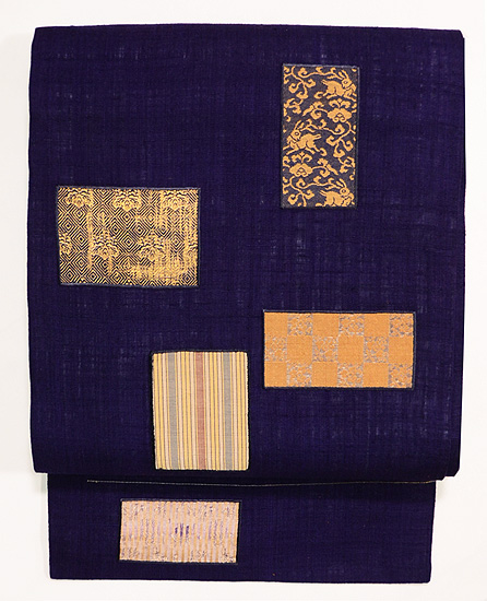 褐色(かちいろ)の紬地に、名物裂を乗せたシンプルで美しい帯です。