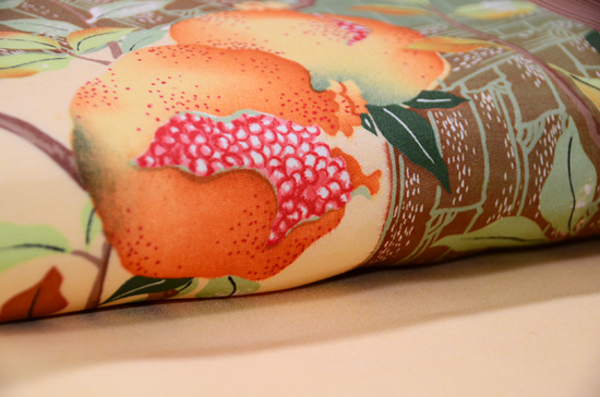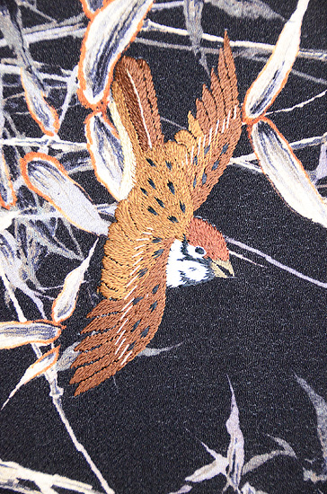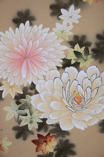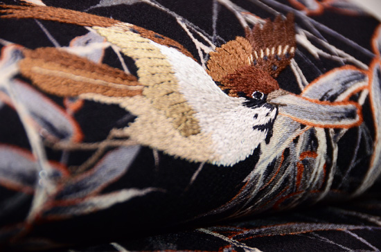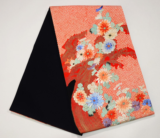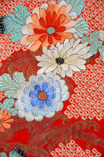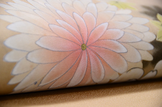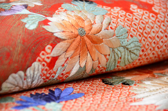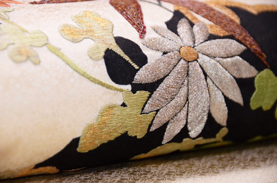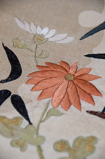 華やかな菊文刺繍が散りばめられ、刺繍の光沢が華やぎをプラスしています。