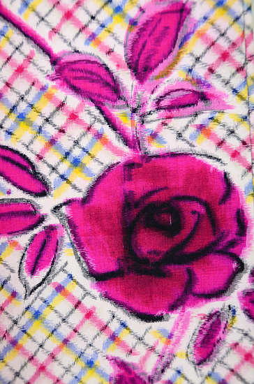お花の赤い色が透明感のある薄紅なので、藍も白い線も凛として涼やかにみえます。