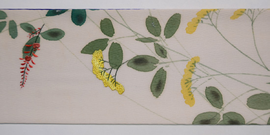 秋の情緒たっぷりのこの帯の出生は着物でしたが、帯としてみごとなひとり立ちをしています。