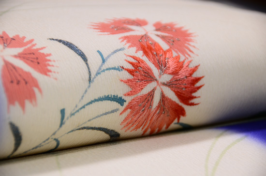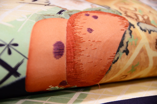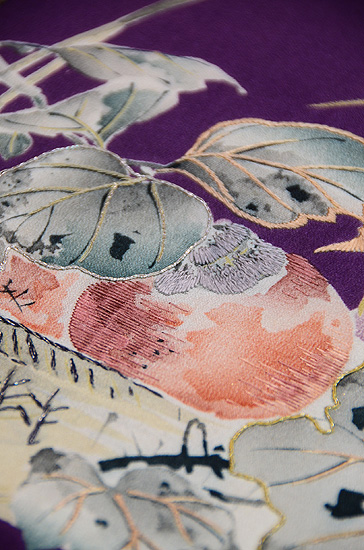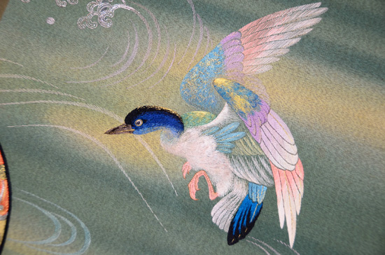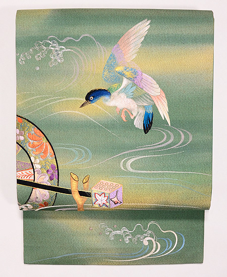 水といえば春ですが、あえて秋の文様が刺されているのが気になります。
