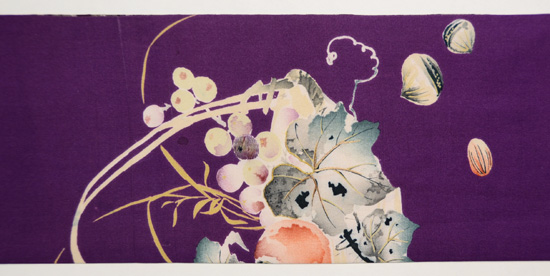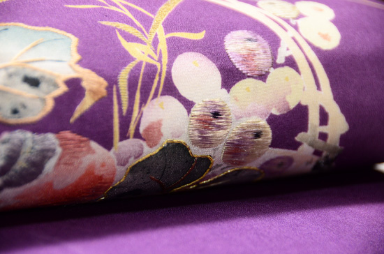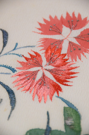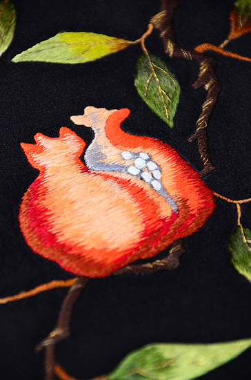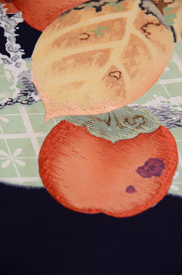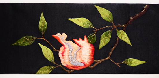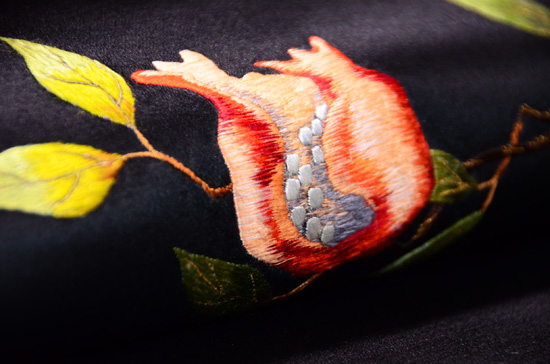 実りの秋をよろこぶように、石榴(ざくろ)の一枝が刺繍されています。