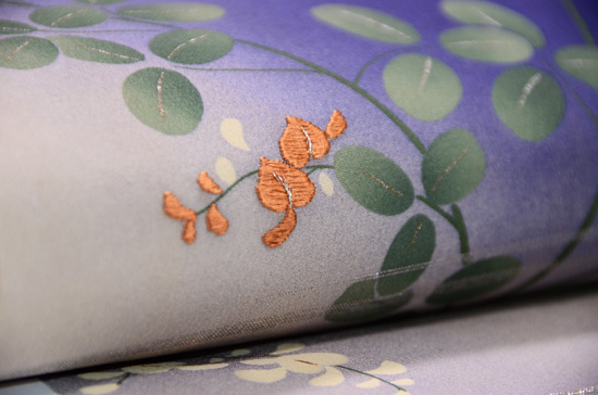 丸い葉、萩の緑みずみずしい素描き友禅。