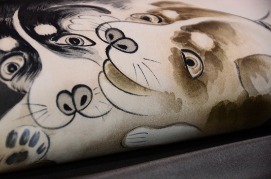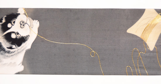 シャボン玉と雉猫ちゃんの刺繍名古屋帯