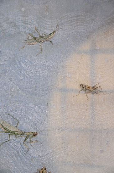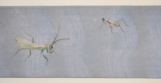 かまきり、バッタ、鈴虫、コオロギと夏の代名詞とも言える虫たちが集まって、アンサンブルが聞こえてきそうな帯です。