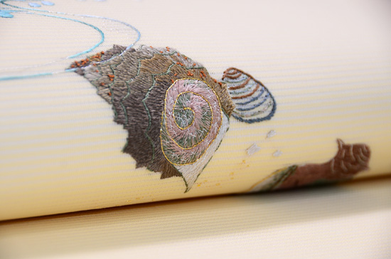 象牙色の絽紗の地は、巾広くお着物を選べます。