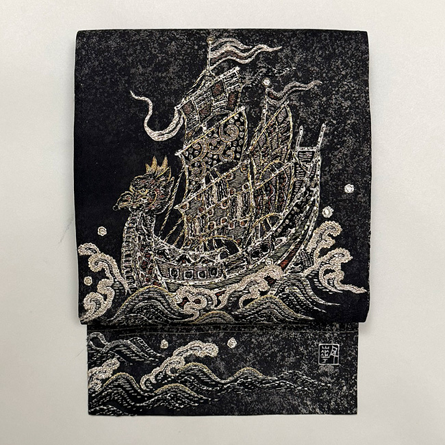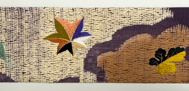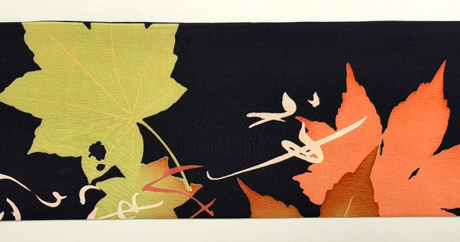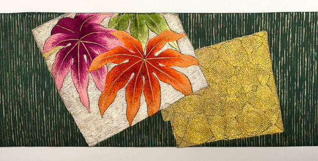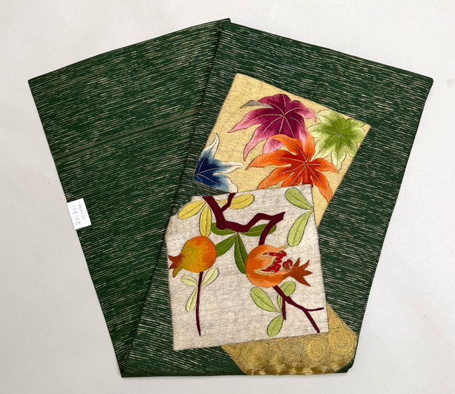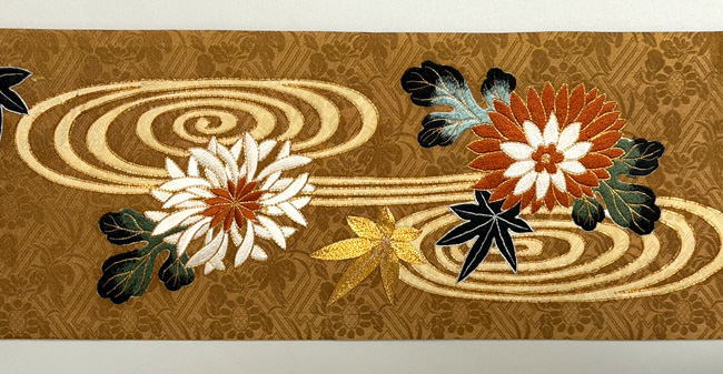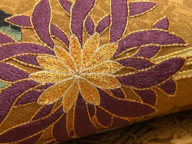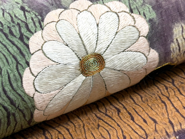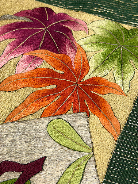 秋を感じさせる地色と刺繍の色合いが見事で、調和の取れた美しさは心にくいほどです。