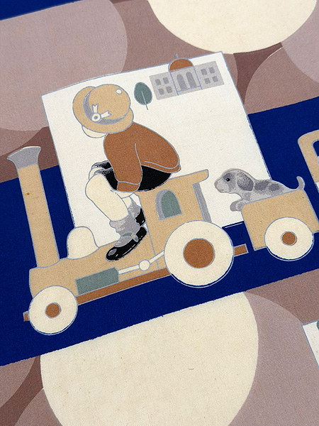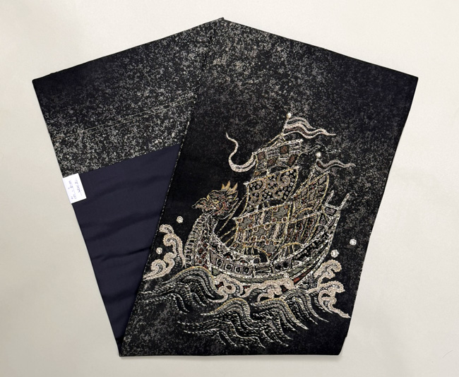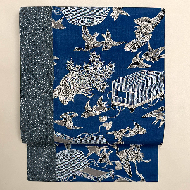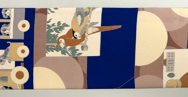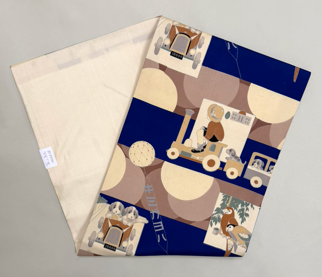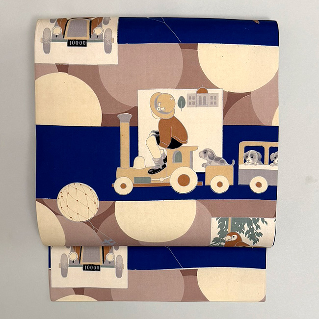 元は男の子の着物だったものを帯にしました。子どもの好きなものが詰め込まれた夢の世界です。