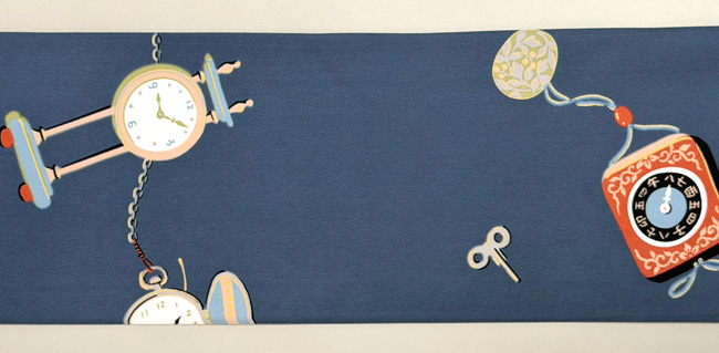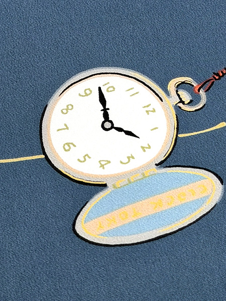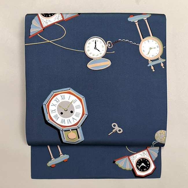 置時計に懐中時計、鳩時計。素敵なデザインの時計が描かれた帯。