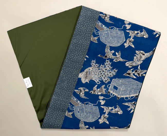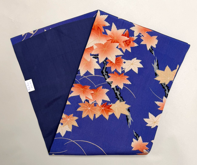 布の量不足だったので、脇に江戸小紋を、手には紬の縞を配してみました。