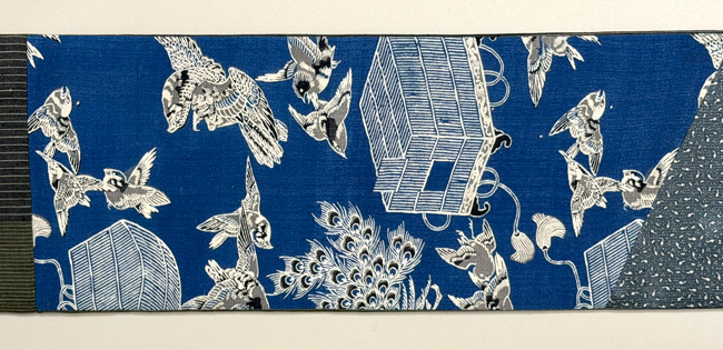 手織りの綴れの袋帯を名古屋帯にお直しして、長くしました。