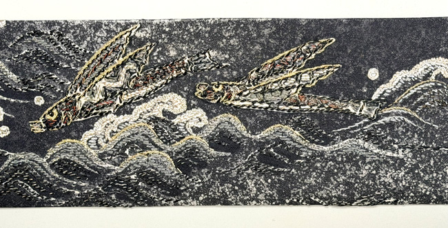 前柄には、あらなみに抗う元気な飛魚が2匹います。