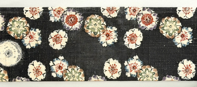 かたと絞りで白場を作ったのち、色を指し、墨の線を入れています。