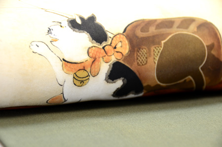 元は男性用の羽織でしたが、この可愛らしさを何とかしたく、帯に仕立て直しました。