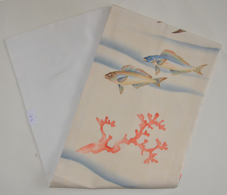 黒地紗に水草と金魚が可愛らしい帯です。