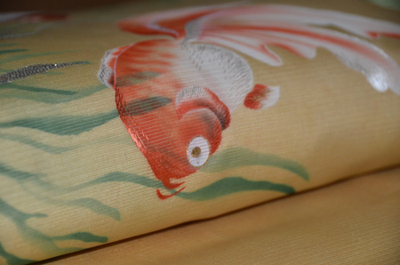 金魚の模様の具合が得も言われぬ品を帯に与えています。