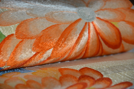 刺繍の演出がほどこされ、たったひとつの帯が出来上がりました。
