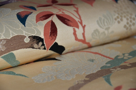 セピア色の帯地は、いくつもの色が混ざりあった深い色です。