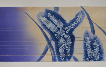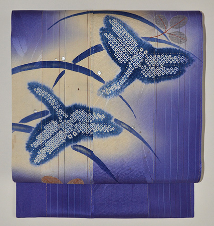 紫、薄紫、白のみのシンプルな配色で、終わりゆく夏を少し惜しんで秋の訪れを待つ時に締めたい、そんな気分にさせてくれる萩模様の帯です。