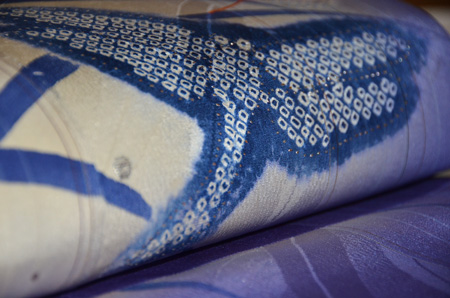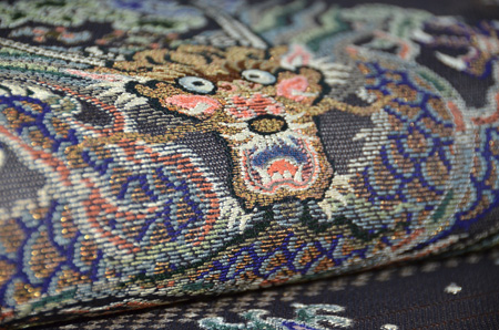 一見すると織物のように見える、西陣織りをルーツとした竹屋町刺繍の丸帯をお仕立て直しいたしました。