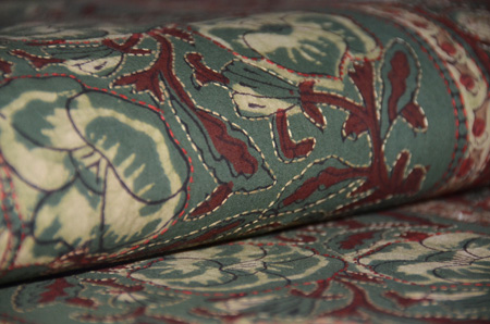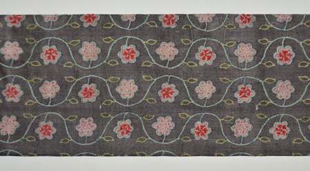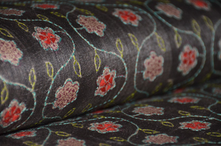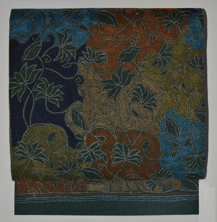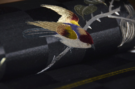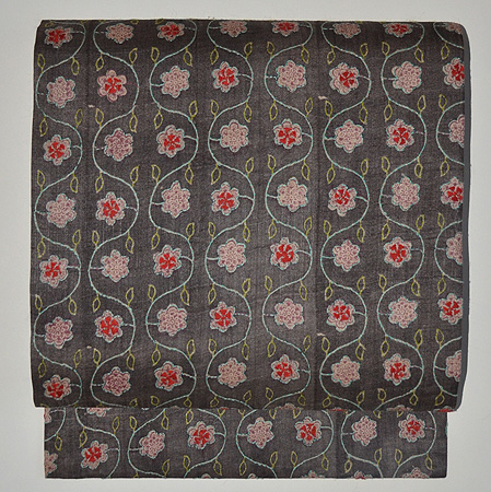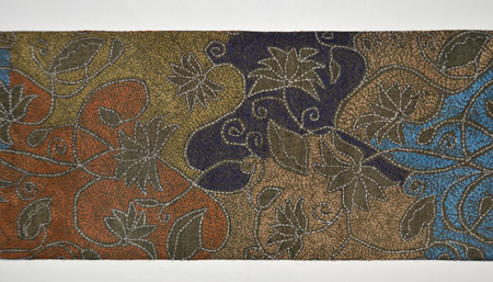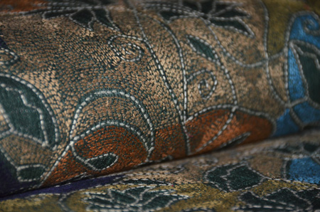 渋い丸帯解きに刺繍を加えました。