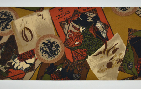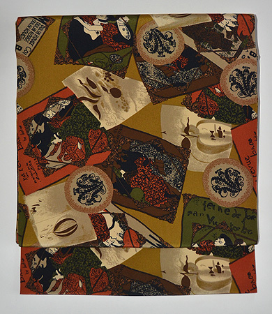 昔の外国のポスターを思わせるような柄の帯です。