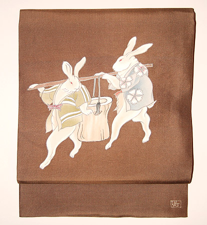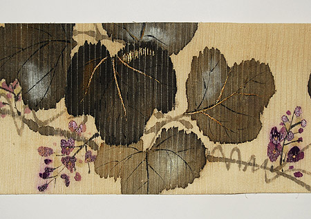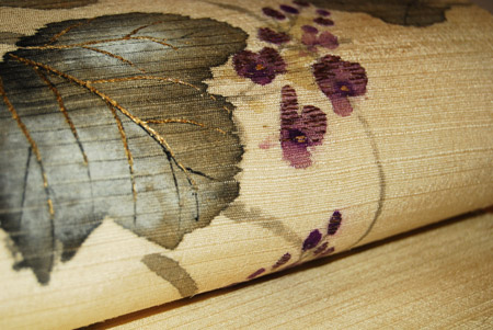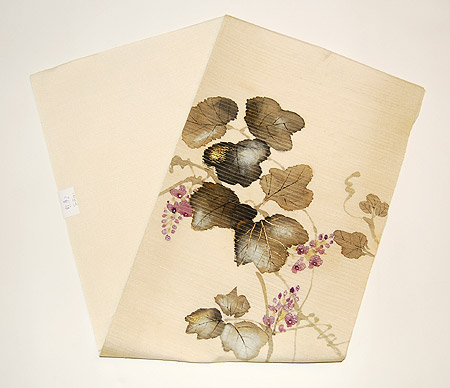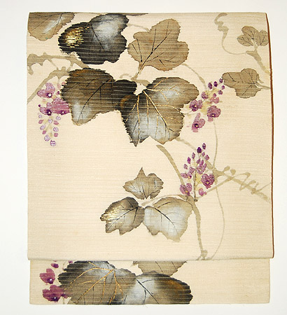 手描きで葡萄と蜜蜂の図が配された名古屋帯です。