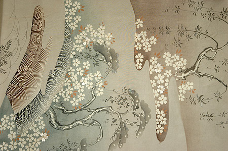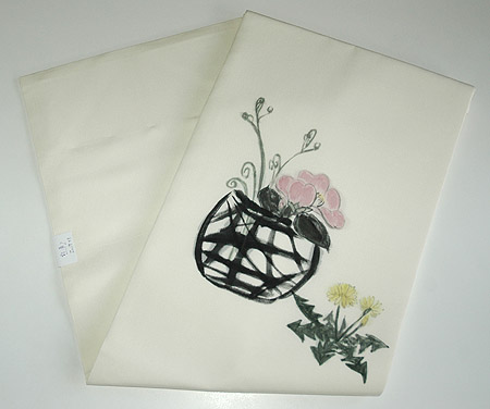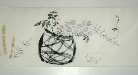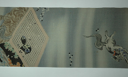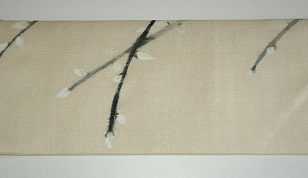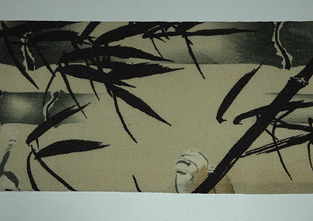 まるで屏風絵のような構図がたのしめる名古屋帯です。