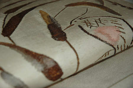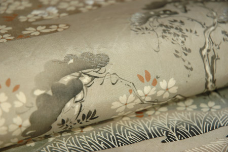 もともと引き抜きの丸帯だったものを、使いやすいように名古屋帯に仕立て直しました。