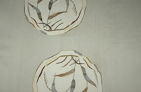 野山にやっと芽を出した早蕨を古布により描写しました。