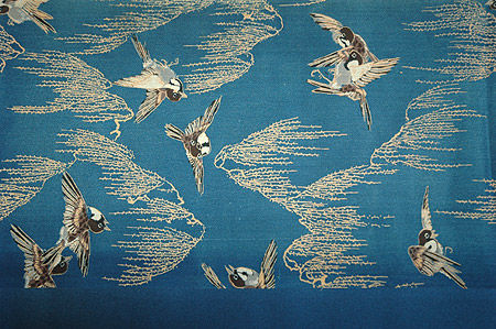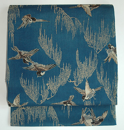 前中心とお太鼓の笹や雀の一部分に手刺繍が施されています。