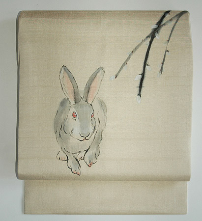 雪の原野に顔を出した兎が、春を待ちわびているかのようなかわいらしい帯です。