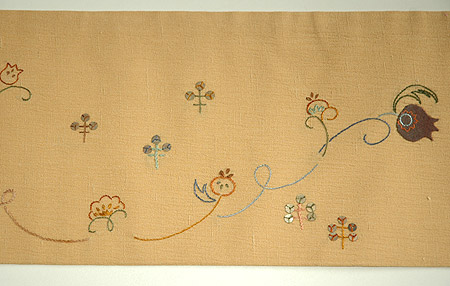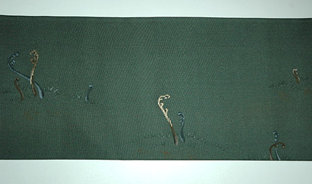 深緑に染めの蕨、芽には一部刺繍も入っています。