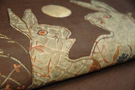 波兎とは「月海上に浮かんでは、兎も波を走るか~」という謡曲の区をテーマに意匠化された文様で、桃山時代ごろに大流行したものです。
