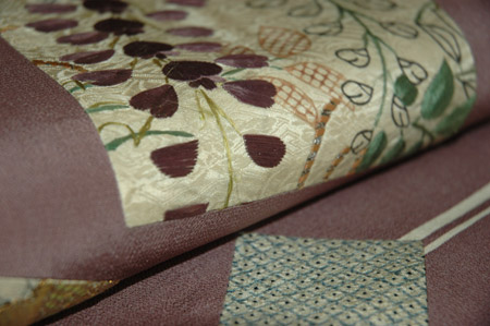 糸錦織りの丸帯を名古屋帯に仕立て直しました。