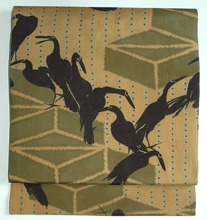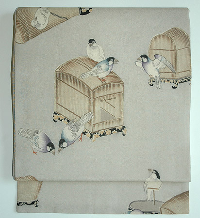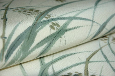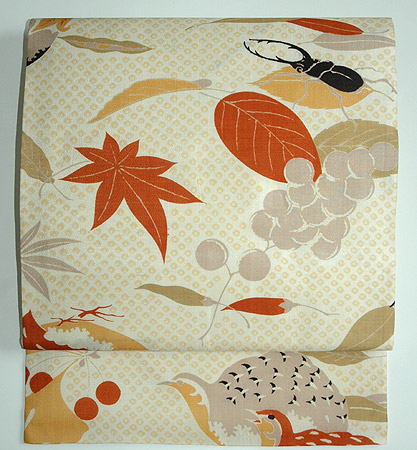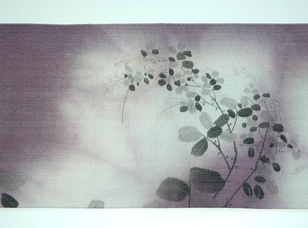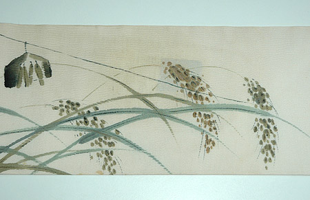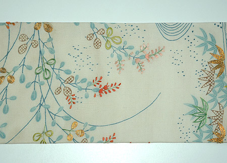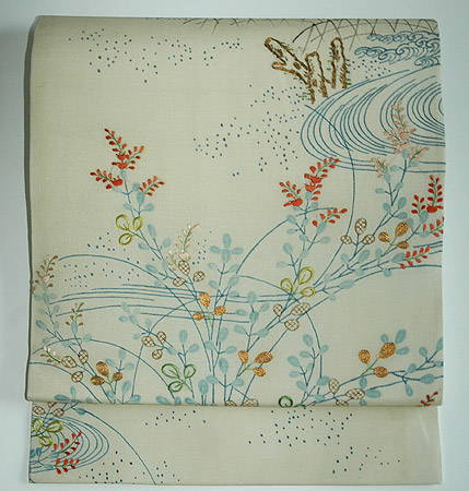 水辺に萩、竹など、ものさびしげな風景が際立ち情緒あふれる帯になりました。