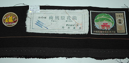 他の花織にない斜めの線が特徴で、大正時代より途絶えていた南風原花織を近年復刻したものです。