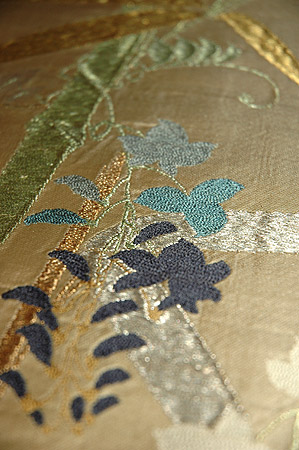 緞子地の江戸裂を解いて名古屋帯にお仕立てしました。